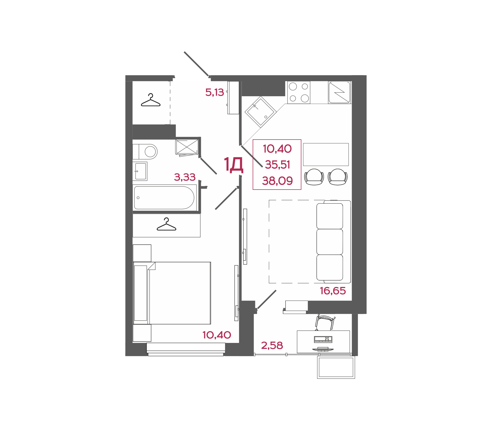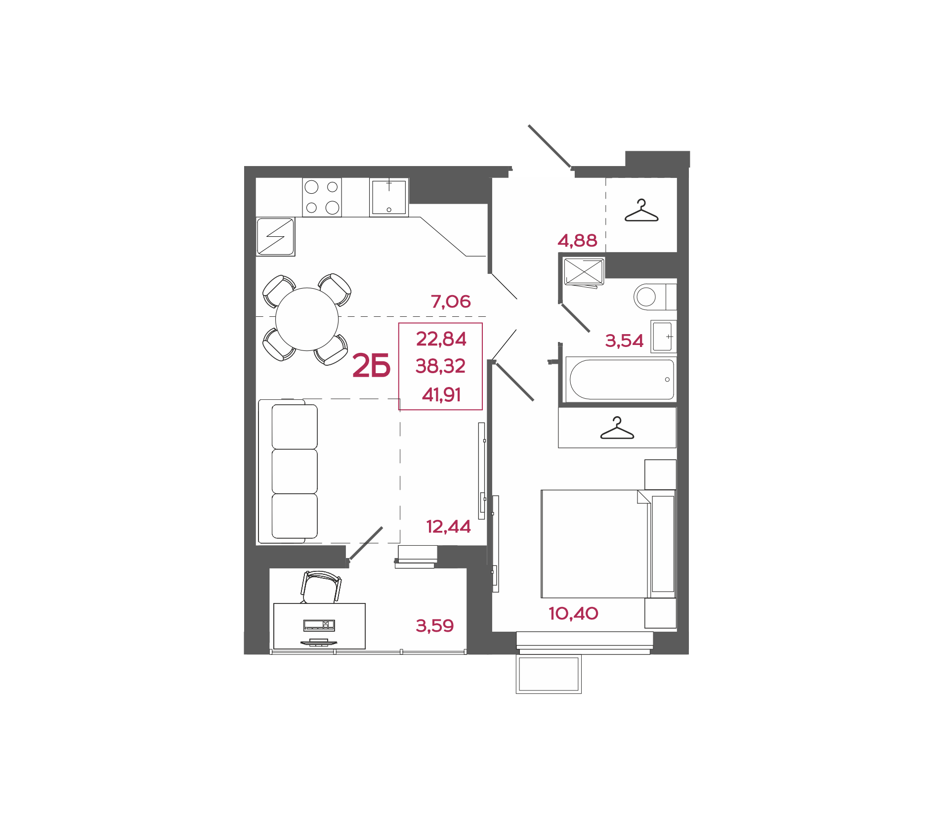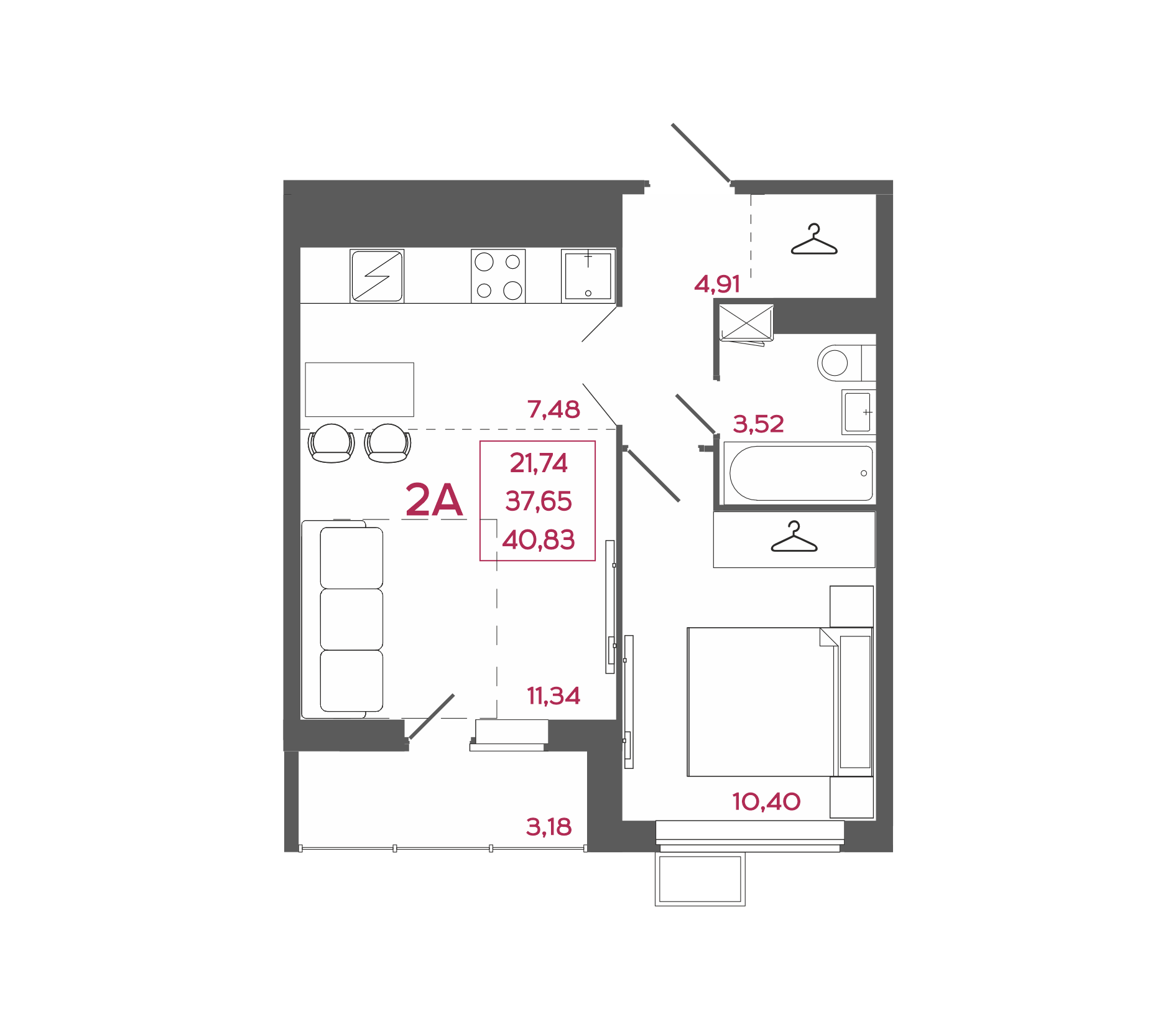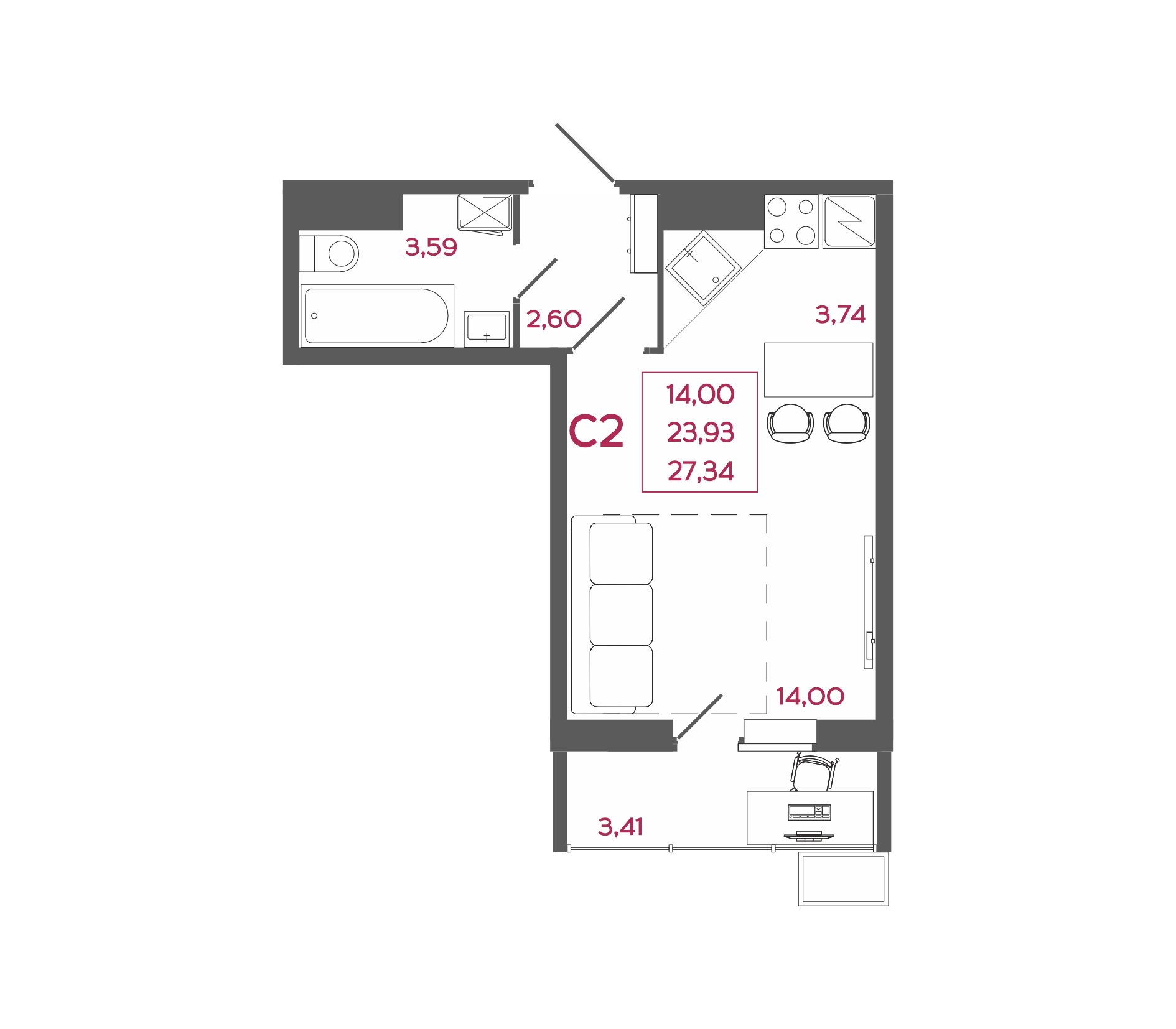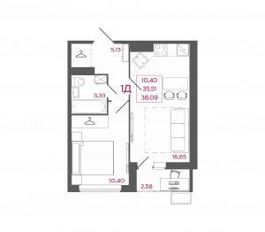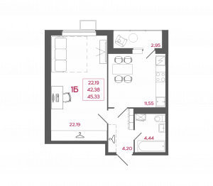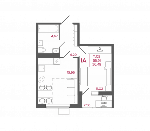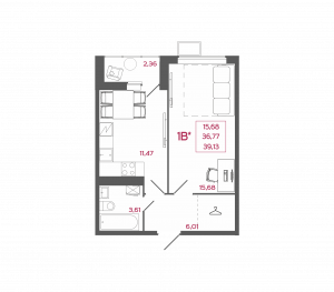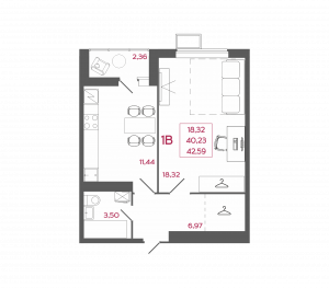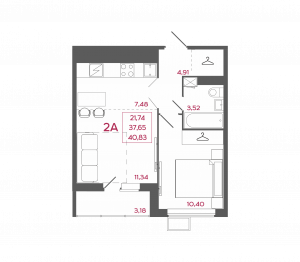 - квартиры площадью от 27,34 м² до 86,94 м²