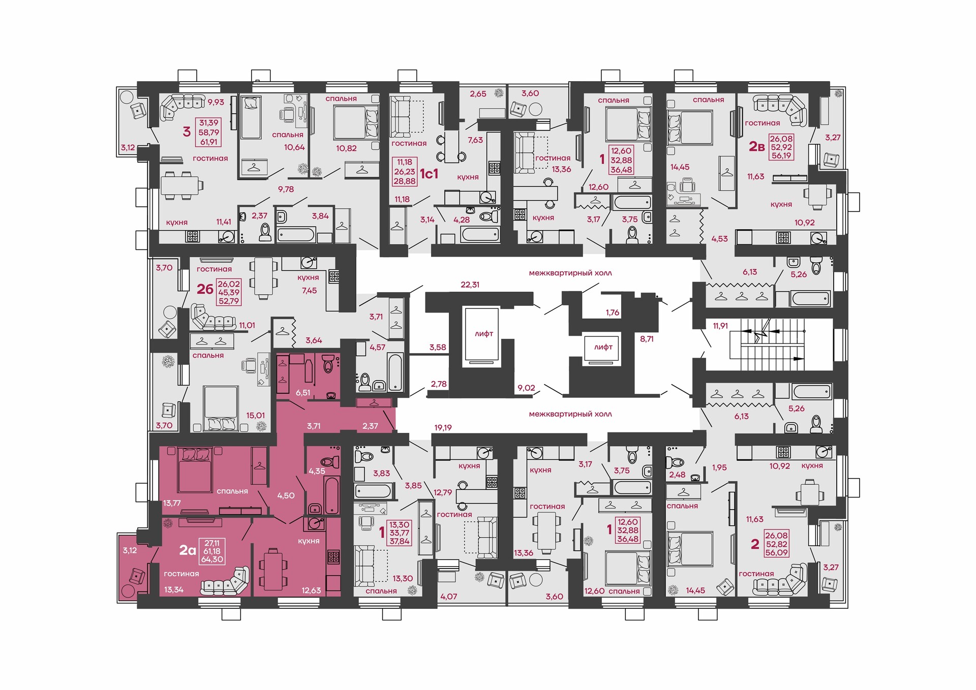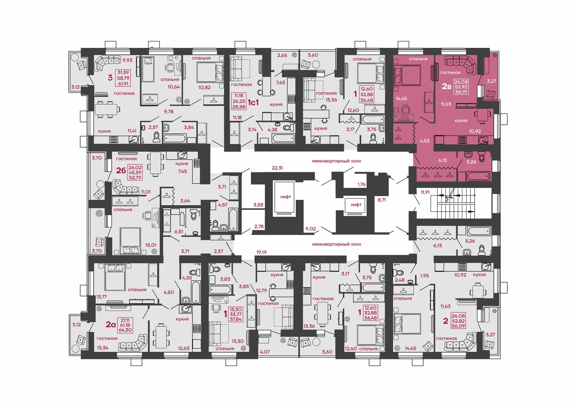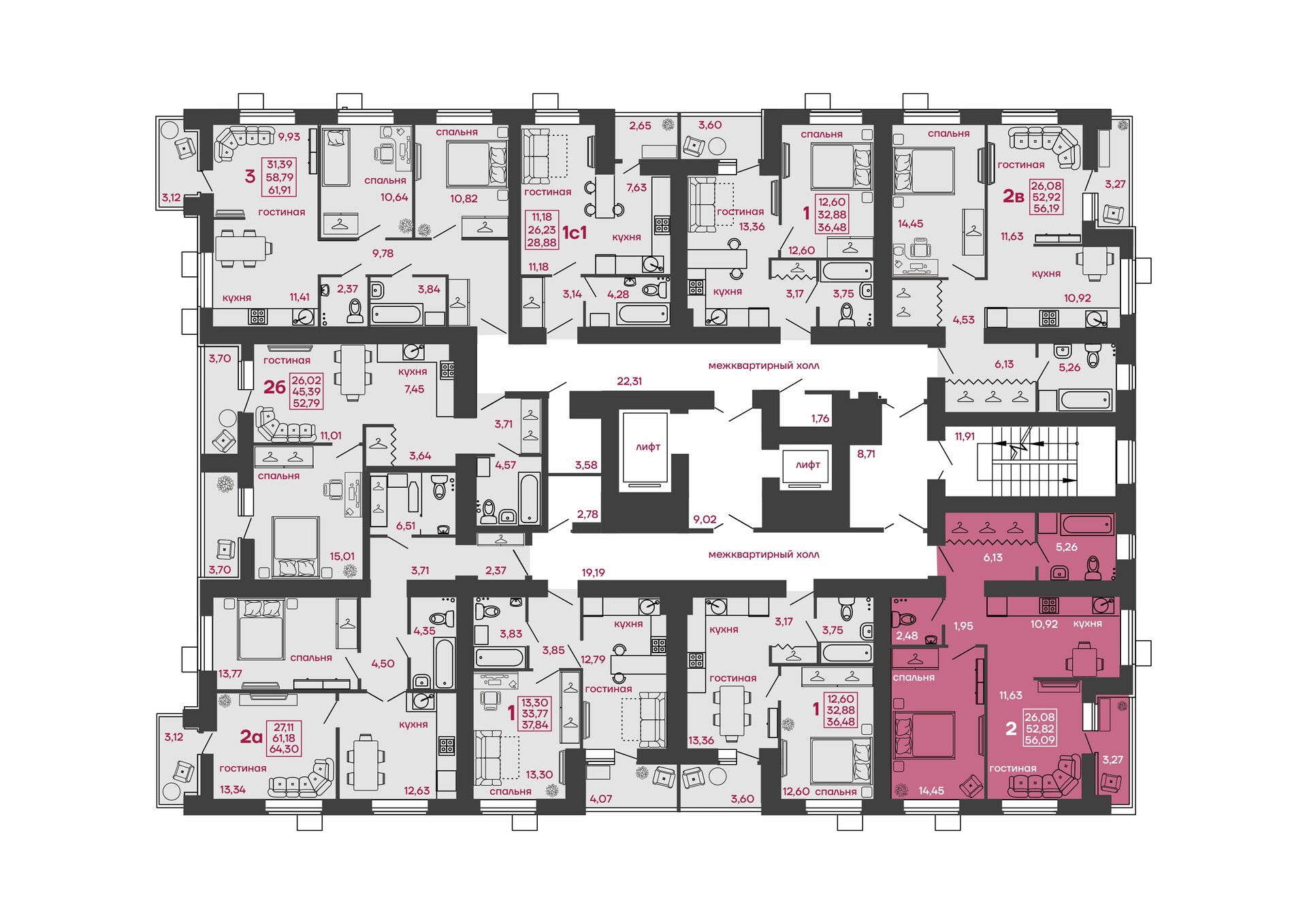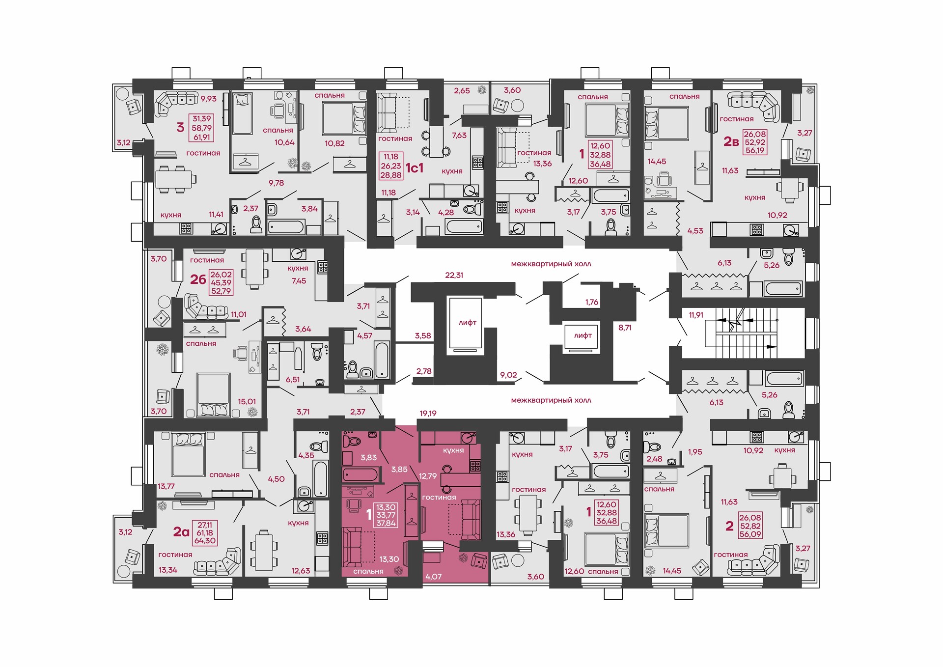 Эргономичные планировки квартир продуманы с учетом максимально эффективного зонирования пространства, которое делает квартиру удобной для всех членов семьи.