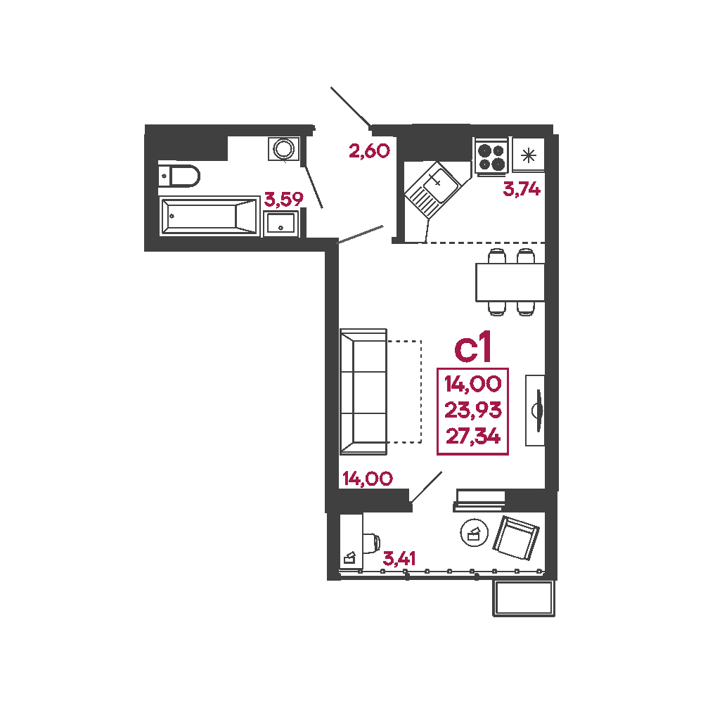 1-комн. квартира, тип С1