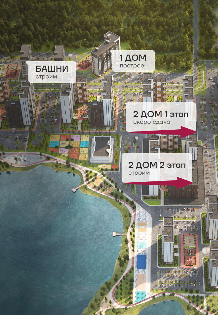 Второй дом закладывает основу квартала Новобережье Парк — место с особой архитектурой и благоустройством. Возведение осуществляется в 2 этапа. Первая очередь строительства 2 дома на стадии финализации и в ближайшие месяцы ожидается сдача дома. Вторая очередь продолжает идеи комплексного развития микрорайона и предлагает новоселам благоустройство с событийной площадью во дворе, дополняя коллекцию планировочных решений новыми вариантами.