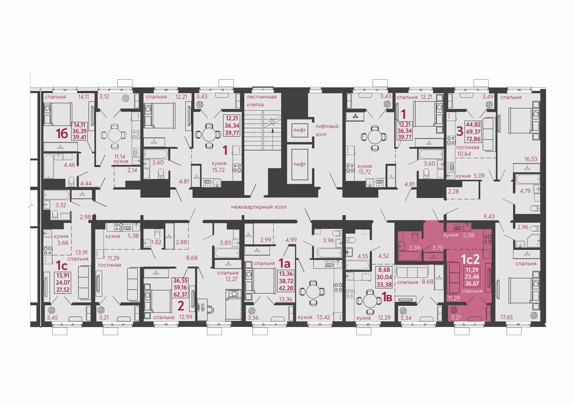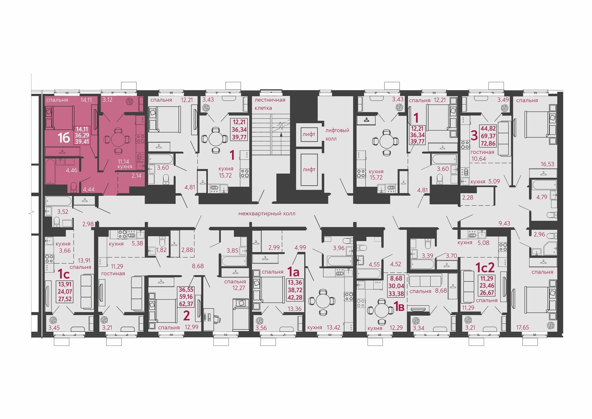 Представлены варианты от небольших комфортных квартир до вместительных с несколькими спальнями, укромными функциональными нишами, гостиными с выходом на лоджию с панорамным остеклением. Во втором доме комплекса разработаны решения для особого уюта — мастер-спальни и теплые лоджии, обязательные места для систем хранения.